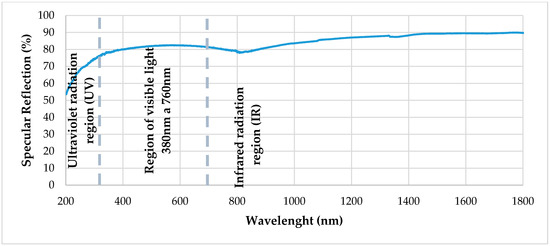 −3 Torr, voltage 12 V, electric current 1900 A and target distance 26 cm) for realization of reflection tests. The reflection tests followed the standard ASTM E903 (Standard Test Method for Solar Absorption, Reflectance, and Transmittance of Materials Using Integrating Spheres) using the Agilent Cary 5000 spectrophotometer (Agilent: Santa Clara, CA, USA). The tests in the reference can be visualized in
