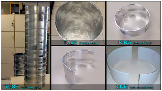 The proposed reflective tube was constructed using two distinct materials, one of which was used in the structural construction of the tube and the other material for the layer that will cover the interior of the tube to ensure reflection. According to what was mentioned previously, in order to reduce the cost of the tube, polymer is used in the structure instead of aluminum. The use of polymers must guarantee the minimum compliance of the parameters (reflexivity, adhesion, mechanical resistance, etc.) of the proposal. The polymer material tested for the structural construction of the proposed tube was the Acrylonitrile Butadiene Styrene (ABS), which makes up the list of polymer materials currently used for their mechanical rigidity, low weight and relative flexibility. The ABS supports temperatures between −73 °C and 175 °C without suffering change in your structure being ideal for the proposed application as ambient temperatures never reach these values. The reference reflective tube (Solatube 160DS) consists of a 0.4 mm thick aluminum foil that serves as a support base for a very fine high purity silver film (patent protected Spectralight