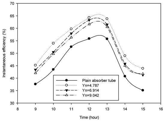 Instantaneous efficiency is calculated using Equation (8), as follows