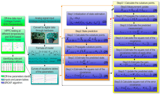 The remaining sections of this paper are structured as follows. Section 2 discusses the parameters of the dynamic LIB model. Section 3 elucidates the principles of the SRCKF algorithm of SOC estimation. Section 4 shows the experimental configurations and the results of the parameters of the lithium-ion battery model identified offline. Experimental results and discussion are presented in Section 5, followed by conclusions in Section 6.