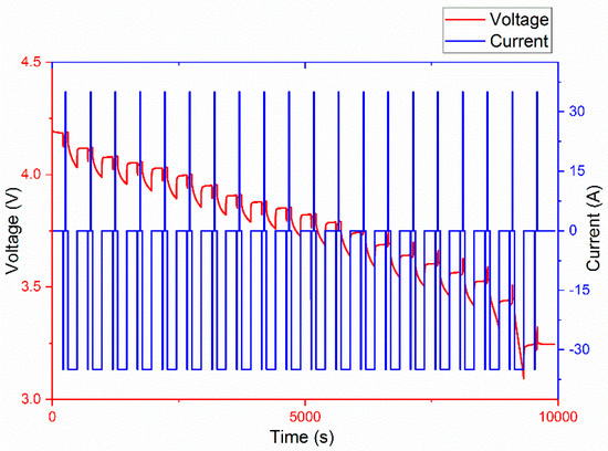 Hybrid pulse power characterization (HPPC) test cycle of the battery (at 1 C).