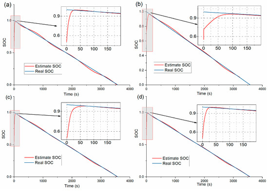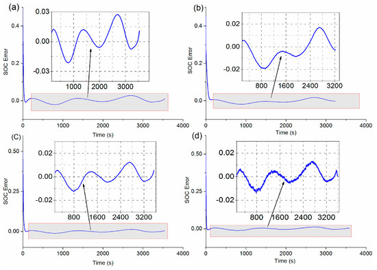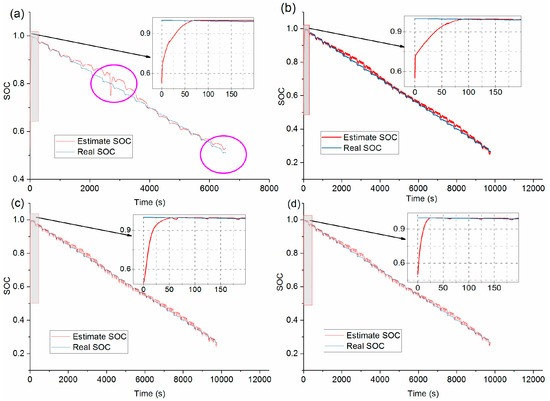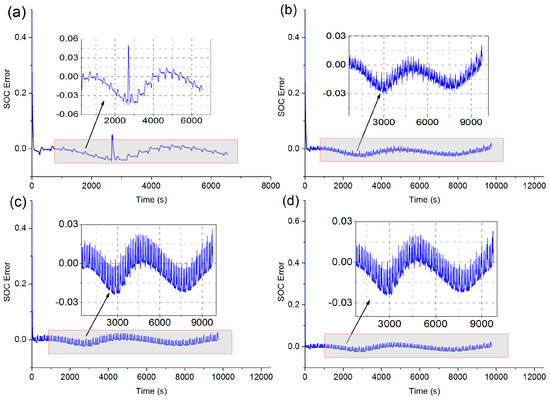Increasingly along with the fossil energy depletion, air pollution and more and more serious global climate changes, people have begun to realize the great importance of the utilization and development of non-fossil energy [1]. Governments all over the world have introduced a variety of incentives to reduce pollutant emissions and greenhouse gas emissions [2,3,4,5,6]. Since transportation consumes a large amount of energy, it is necessary to develop and utilize electric vehicles (EVs) to realize green mobility. Lithium-ion batteries (LIBs) have many advantages, such as high power density and durability, and therefore they have been widely used in EVs. However, when overcharging occurs, the LIBs are more likely to burn and explode than other batteries, necessitating higher requirements for battery management system (BMS) [7,8,9,10]. A few parameters, such as maximum discharge current, specific energy of weight, specific energy of volume, and power density, determine an EV’s performance [11,12,13,14,15]. The most important index for a BMS is state of charge (SOC). Because of the inherently time-varying and non-linearity characteristics of LIB under working conditions, accurate estimation of SOC remains a challenge [16,17,18,19].
