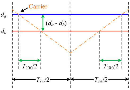 If Equation (34) is not satisfied, then T100_add/2 should be added to T100/2 in each half switching period. It is realized by adjusting the value of da or db, and the duty ratio to be complemented is