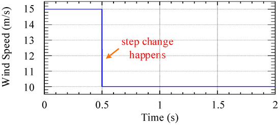 Since the machine operates in generator mode, the torque values are negative, indicating that the electromagnetic torque Tem functions as the load torque. It can be seen that Tem is almost equal to the mechanical one Tm in the high wind speed period. Then, during a short time period after the wind speed step change, the absolute value of Tem is larger than that of Tm, and the rotor slows down in this case. After that, the distance becomes smaller as the rotor speed tends to be approximately a steady value.