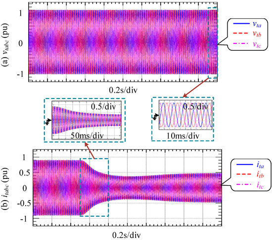 Take the supersynchronous operation mode of DFIG as an example, where the current flows are depicted in Figure 3, the relationships among the currents at the DC and AC sides for RSC and GSC are derived, as shown in Table 3.