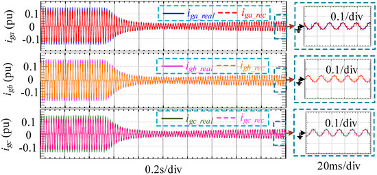 In terms of the model behavior in the experimental rig, taking the external disturbances of uncertain grid power quality (current harmonics, grid unbalance, frequency oscillations) and the noises in analog-to-digital (A/D) process into account, deteriorated control performance will be observed. Specifically, obvious spikes will be presented in the voltage and current waveforms, and the output power quality will not be as high as that derived in the simulation results. In addition, due to the unpredictable aging process of the DC-link current sensor, the accuracy of current measurement may not be high enough, which is also detrimental to the performance of DFIG. To exclude the noises produced during the experiments, additional filters should be used.