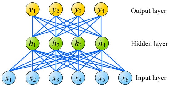 Artificial neural networks (ANNs) are computing systems inspired by the biological neural networks. The general structure of ANNs contains neurons, weights, and bias. Based on their powerful molding ability, ANNs are still very popular in the machine learning field. However, there are many ANN structures used in the machine learning problems, but the Multilayer Perceptron (MLP) [32] is the most commonly used ANN type. The MLP is a fully connected structure artificial neural network. The structure of MLP is shown in Figure 1. In general, the MLP consists of one input layer, one or more hidden layers, and one output layer. However, the MLP network presented in Figure 1 is the most common MLP structure, which has only one hidden layer. In the MLP, all the neurons of the previous layer are fully connected to the neurons of the next layer. In Figure 1, x1, x2, x3, … , x6 are the neurons of the input layer, h1, h2, h3, h4 are the neurons of the hidden layer, and y1, y2, y3, y4 are the neurons of the output layer. In the case of energy load forecasting, the input is the past energy load, and the output is the future energy load. Although, the MLP structure is very simple, it provides good results in many applications. The most commonly used algorithm for MLP training is the backpropagation algorithm.