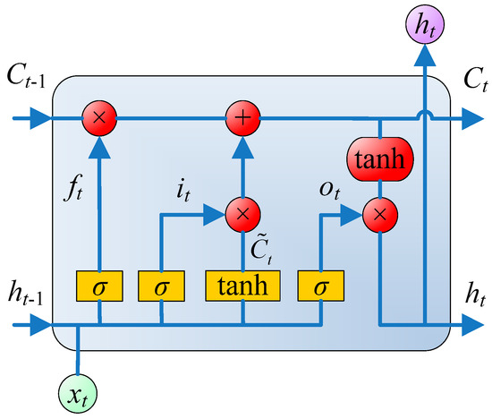The other popular solution of the forecasting problem is Long Short Term Memory network (LSTM) [33]. The LSTM is a recurrent neural network, which has been used to solve many time sequence problems. The structure of LSTM is shown in Figure 3, and its operation is illustrated by the following equations: