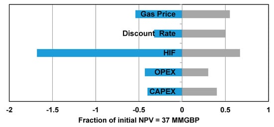 NPV sensitivity analysis showing the significant role of HIF parameter.