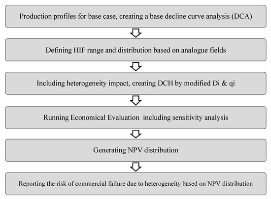 To model the RCF associated with a hydraulic fracturing project considering the heterogeneity of the gas reservoir, the workflow presented in Figure 4 was followed.