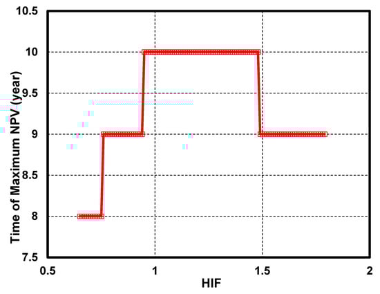 The commercial cut-off of each realization was calculated and reported for positive NPVs (8 to 10 years) versus HIF (Figure 6).