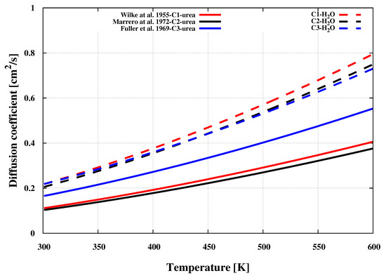 4], two possible approaches (multi-component droplet and a wet-solid particle) for the representation of UWS in a CFD simulation have been evaluated. It was concluded that the wet-solid approach provides greater accuracy. In all these studies, the diffusion of species that plays a determinant role in evaporation dynamics was widely described relying on a prescribed correlation, among them the Wilke et al. formulation [
