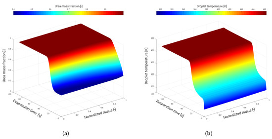 8]. When the droplet size is small and/or the vaporization of water is slow, the concentration of urea throughout the droplet increases uniformly, which finally leads to the formation of a solid particle. However, when a rapid water vaporization occurs on the droplet surface, the urea concentration increases at the droplet surface, which builds up a urea shell around the droplet. This may lead to the boiling of water inside the urea shell and even to the explosion and fragmentation of the droplet as it has been observed experimentally. In fact, the droplet sizes are relatively large (2.4–3.0 mm) in the experiments carried out by Musa et al. [