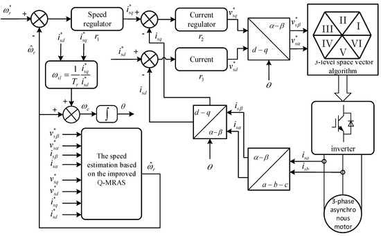 The improved Q-MRAS speed estimation method can be applied in the indirect vector control system of the induction motor to achieve the sensorless speed vector control. The overall design diagram is given in Figure 3.