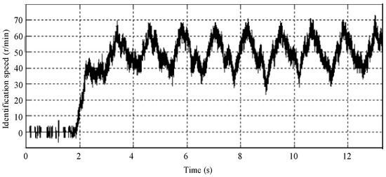 In order test the performance of the two algorithms when running in the low speed condition, the zero-load running condition is set as follows: the speed is 50 r/min and the load is 0 Nm. The fluctuation of the actual speed is shown in Figure 20. Figure 21 and Figure 22 show the estimation algorithm result of the Q-MRAS method and improved Q-MRAS method in the low speed condition. Both of the results have a greater fluctuation, but the conventional Q-MRAS speed estimation fluctuates greatly. The tracking effect declines greatly because of the distortion in the tracking process of the startup condition. However, the improved algorithm can track the speed better, which has a significant relationship with the variation of the motor parameters. The accuracy of the conventional Q-MRAS algorithm will decline. The fluctuation in the steady state of the improved Q-MRAS system is related to the variation of the rotator time constant in the indirect vector controlling system. The results of the error in the steady state are compared and analyzed in Figure 23. The fluctuation of the conventional Q-MRAS is within ±40%. The estimation accuracy of the improved algorithm in the steady state performs well in the low-speed condition.
