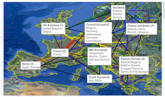 The 9-node representation of the EU system in ASUC.