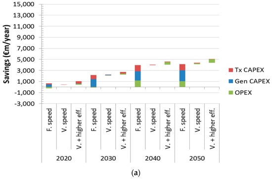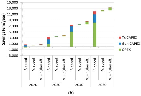 The results also indicate that—for the short-term savings or in the low RES scenario—the savings come predominantly from the reduction in the infrastructure cost, while in the high RES scenario the largest savings beyond 2030 come from the savings in OPEX, as a consequence of improving the utilisation of renewables and other low marginal cost generators.