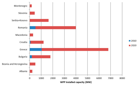 The total installed power of WPP by 2020 in SE region is forecasted to reach 17,000 MW (as in Figure 2), as compared to 1800 MW of installed WPP capacity in 2010. This forecast indicates that within 10 years, wind energy production will increase by a factor of 9 times in SE region. This does not account for the growth of wind energy in Turkey, which is projected to have an increase of 13,000 MW by 2017. The large growth rate is already achieved in the first two years, having WPP capacity increase from 1800 MW in 2010 to 4500 MW in 2012.