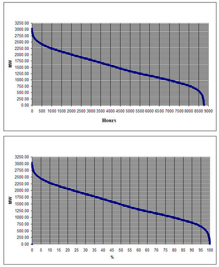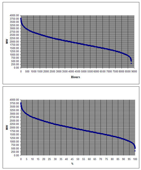 Based on previous year scheduled fast tertiary reserve for positive and negative increment (or variations), its duration curves can be drawn to show the availability of fast tertiary reserve. Hourly values of available fast tertiary reserve separately for positive and negative increment are sorted in descending order and charted using X Y (Scatter) chart type as in Figure 6 and Figure 7.
