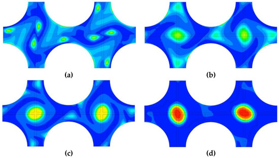 As mentioned above, the iMUSIG model was proposed to deal with the two-phase flow with bubble size varying over a very large range exceeding the critical bubble size where lift force changes its direction. The homogeneous MUSIG model is qualified to model the bubble size distribution and its effects on the momentum transfer between two phases if most of the bubble sizes are lower than this critical size. It was found that size of most bubbles in the bubbly flow in fuel assembly with vaned spacers is lower than the critical value estimated by the Tomiyama model [11] after a series of simulation on the two-phase flow in fuel channels. Thus, in this work, the homogeneous MUSIG model was employed, and Equations (4)–(6) can be deduced into the following forms, i.e.,