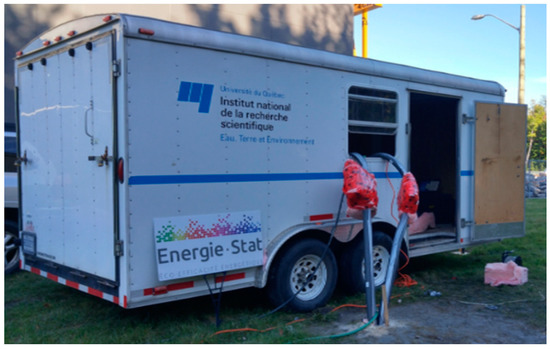 A test was performed at the Institut national de recherche scientifique (INRS) laboratory facilities located in Québec City [18]. The borehole was drilled in 10 m of unconsolidated till and clay followed by 144 m of shale from the Sainte-Rosalie Formation in the St. Lawrence Lowlands geological province (Figure 3). A single U-pipe with no space clips was installed in the borehole filled with thermally enhanced grout. The grout was a mixture of Barotherm® Gold bentonite and silica sand.