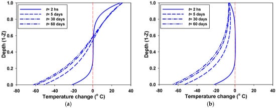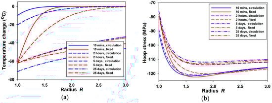 In this section, the physical solutions to the temperature and stresses are obtained by applying the Stehfest method [48]. The parameters used in the following calculations are listed in Table 1 unless otherwise specified.