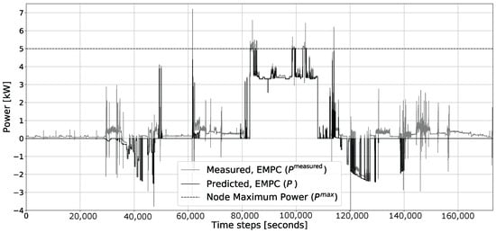 Summarizing, the EMPC controller has a planning scope, and acts based on energy feedback (i.e., SOC feedback). If it had perfect and complete knowledge of the loads and generation sources in the node, the second-level fast PID controller would not be needed. The role of the PID controller, which acts based on feedback of power measurement from the smart meter, is indeed that of activating the ESS to compensate for disturbances on the node power profile planned at EMPC level. The two controllers influence each other, since they both act on the ESS (the second-level controller perturbs the SOC feedback acquired by the EMPC one, while the ESS setpoint computed at EMPC level may in practice limit the control possibilities at second PID level; e.g., the ESS EMPC setpoint may be close to the ESS upper/lower threshold and thus make further up/down ESS control corrections by the PID impossible).