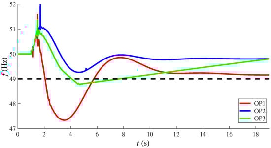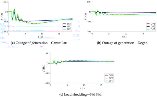 The network frequency for each case is shown in Figure 16. It can be seen that the performance of the proposed scheme was satisfactory for all three contingencies.