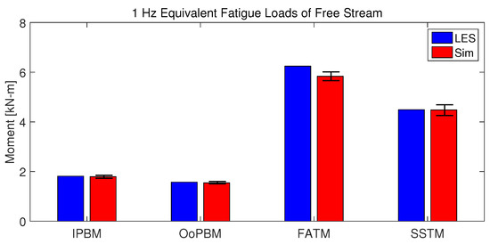 Table 16 shows standard deviation and maximum values of the different turbine loads based on stochastic simulation of the wake. For comparison, turbine load statistics based on both LES and Frandsen’s mean and turbulence models [6,36] are included. Generally, similar trends in the load statistics are seen for the stochastic model relative to that for the LES wake fields. This suggests that the regression-based stochastic model captures turbine load statistics reasonably well. Standard deviation and maximum values for the OoPBM and FATM loads from the stochastic model are about 5% higher than those from the LES wake fields. On the other hand, the load statistics for the Frandsen model also show similar trends with those from the LES wake fields.