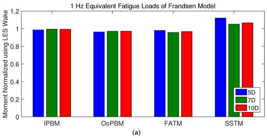 Normalized 1-Hz equivalent fatigue loads. (a) stochastic simulation; (b) Frandsen model.