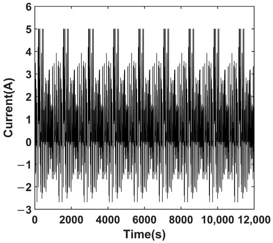 Experimental data collected from typical driving cycle tests are commonly used to evaluate the properties of SOC estimation algorithms. In this section, the widely used New European Driving Cycle (NEDC) and Federal Urban Driving Schedule (FUDS) cycles are selected to simulate the typical driving conditions of electric vehicles on roads. Figure 6 and Figure 7 respectively show the battery current profiles under the NEDC and FUDS cycles.