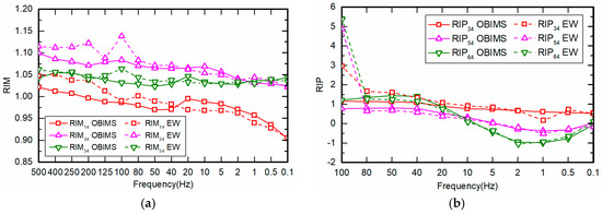 Relative impedance between different batteries obtained with designed impedance measuring system and electrochemical workstation (EW). (a) Relative impedance modulus (RIM) between different battery cells; (b) Relative impedance Phase (RIP) between different battery cells.