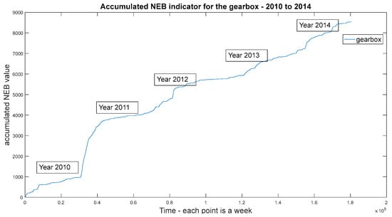 Accumulated NEB indicator for the gearbox between 2010 and 2014.