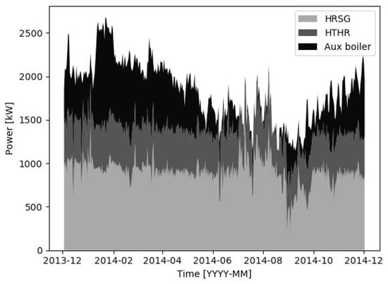 - the total heating demand, further divided into the LT and HT needs, which is related to the external temperature;