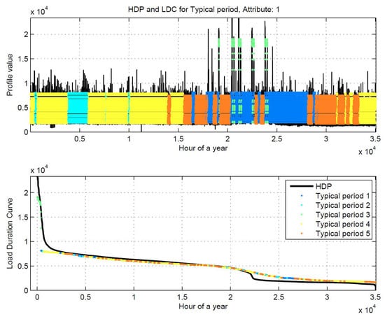 - the deviation from the load duration curve of the average values of each period, ;