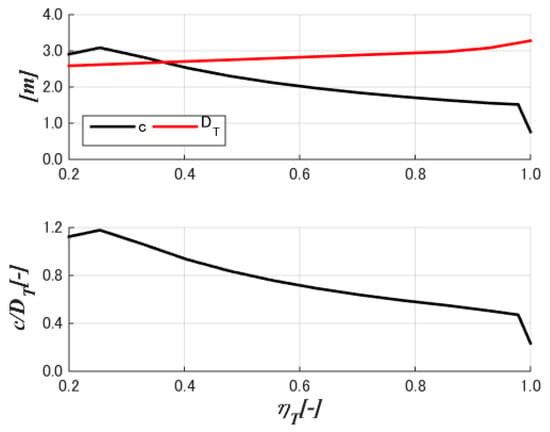 Blade chord length c, tower diameter DT, and their ratio c/DT [].