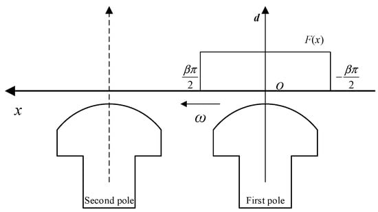 where P is number of pole-pairs and x is the coordinate established on the rotor. Since the rectangular MMF is symmetric to the rotor coordinate d, there is only cosine term in Equation (11). The formula can be changed to