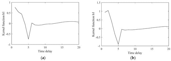 The first-order kernel identification results are shown in Figure 5. Figure 5a is the first-order kernel identification result when the winding is normal. Figure 5b is the first-order kernel identification result when the winding is short-circuited. In Figure 5, the value of the kernel function on the left side of the figure increases when the fault occurs. Some of the values change from <1 to >1.