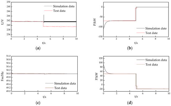- Taking the microgrid demonstration system in China as an example, the important parameters of the PV, wind turbine, and energy storage unit in the system were obtained, and the accuracy of the model was verified through the comparison of the simulation data and the test data during the grid-connection/island switching process. Therefore, it can be concluded that the modeling method proposed in this paper is effective.