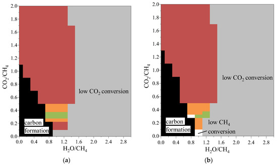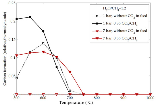 2 concentration in the hot parts of the reformer. The Boudouard reaction—Equation (4) is exothermic, hence promoted by low temperatures, high CO concentration and low CO