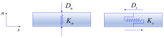 where Kn and Ks are the normal and stress stiffnesses of the springs, which are chosen to representative of the properties of the fracture filling material.