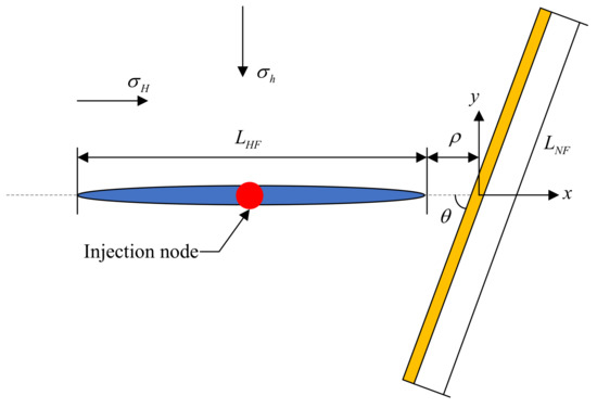 Additionally, various analytical criteria have been proposed to predict the behavior of a HF when it intersects a pre-existing NF [12,13,19,20,21,22,23,24,25,26,27]. However, these criteria, which generally consider a constant in-situ stress along the NF and assumed the HF already intersected the NF are oversimplified. In fact, with the extension of the hydraulic fracture, the state of the stress within the rock is in a dynamic changing process, and the new fracture may appear along the posterior side of the NF before the HF intersects the NF.