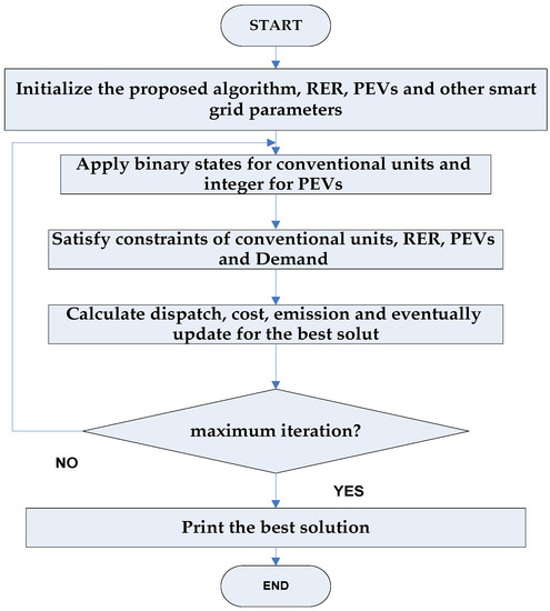 Figure 1 shows a flowchart for optimally reducing the objective function using both the conventional units, PEVs and RERs to decrease the operating cost and decarbonize the emission in the smart grid through T = 24 h.