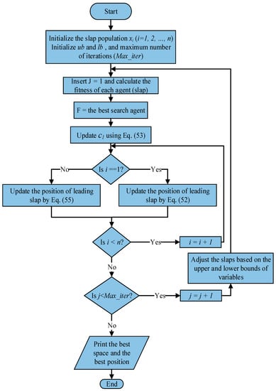 where, is the siting of the first salp leader in the j-th dimension, Fj shows the siting of the food source in the j-th dimension, indicate the upper/lower boundaries of j-th dimension c2, and c3 are random numbers. Equation (52) illustrates that the salp leader only updates its siting in accordance with the food source.