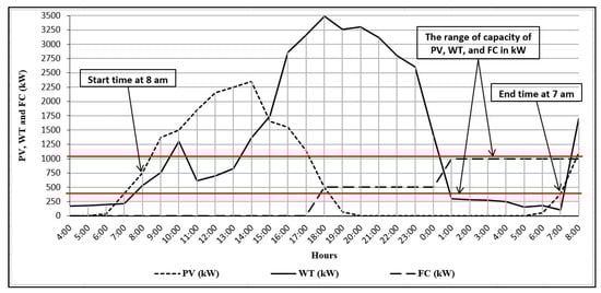Two different systems of RDGs (A) and (C) are deemed in this work. The RDG system (A) is selected as a photovoltaics system (PV) and fuel cell (FC) at a power factor (PF) = 1, which only delivers real power. The second RDG system (C) is considered as a wind turbine (WT) at an optimum PF of 0.8 to 0.95 that is able to deliver real and reactive power.