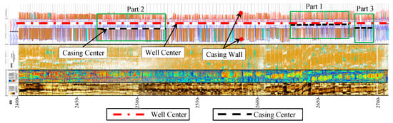 The isolation scanner (Schlumberger technology) is used in the shale gas wells of this study to evaluate the wellbore integrity. The results show that casing eccentricity occurs very often in these wells, as shown in Figure 2, where the red dashed line indicates the center axis of the well and the black dashed line represents the center axis of the casing. It is extremely hard to make sure that the casing is laid absolutely centered in the field. From Figure 2, we can see that most of the length of the casing is eccentric in this well, which leads to eccentricity of the cement sheath. As the result, the thickness of the cement sheath varies along its circumference at different cross-sections. In Part 1, the magnitude of the casing eccentricity is small so it can be treated as located at the center of the well, while in Part 2 and Part 3, the casing eccentricity increases significantly. The stress in the cement sheath may be affected by the casing eccentricity, and we try to understand the effect of the casing eccentricity on the stress distribution in the cement sheath to come with a solution to decrease SCP in similar wells in future.