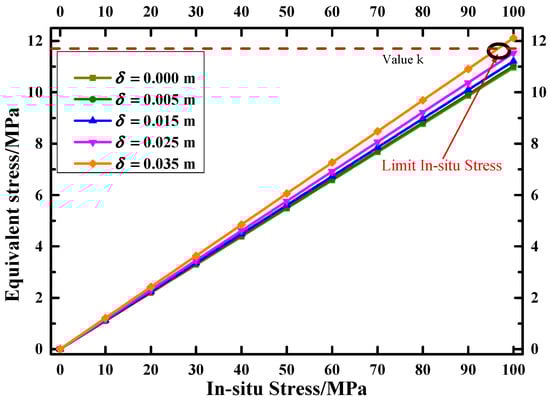 Variation of equivalent stress with the increase of crustal stress in different eccentricity δ.