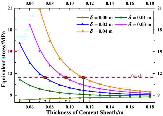 Variation of the equivalent stress of the cement sheath with the increase of cement thickness.