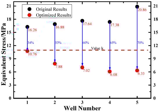 Equivalent stress of the cement sheath in original and optimized parameters.