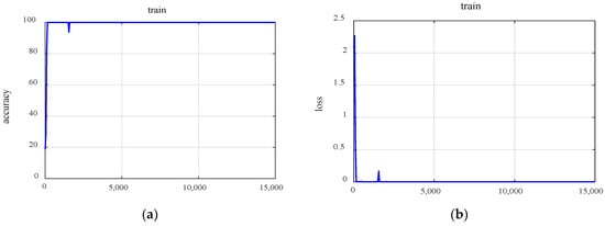 Accuracy and loss function curves for the training data. (a) Accuracy curve; (b) Loss function curve.